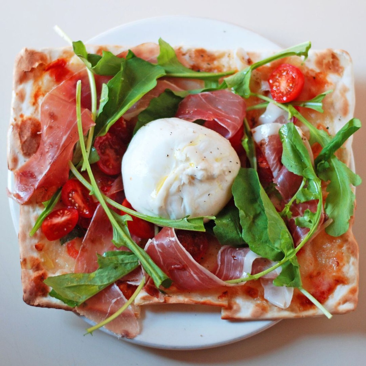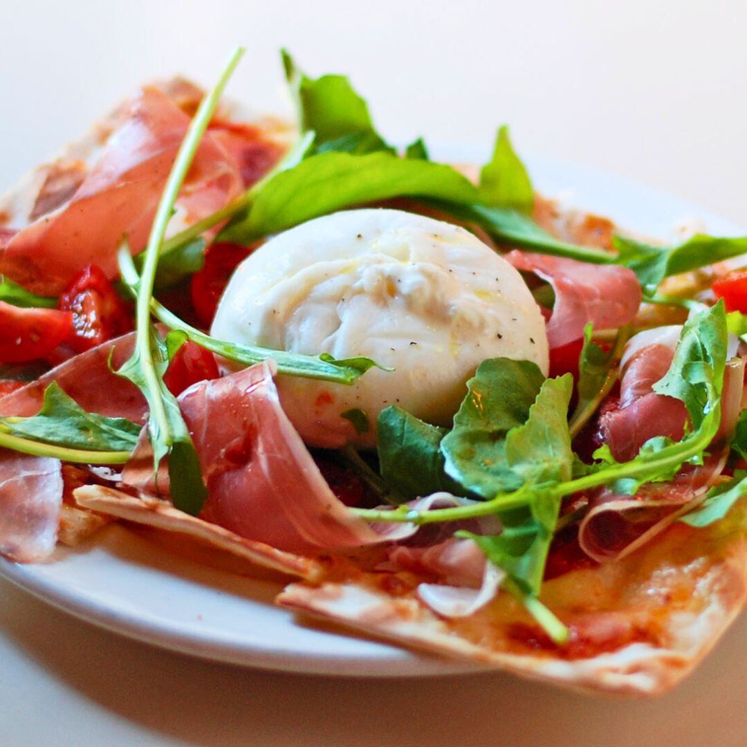 王様のピザ(丸ごとブッラータとスペイン産生ハムのマルゲリータ・ピザ)