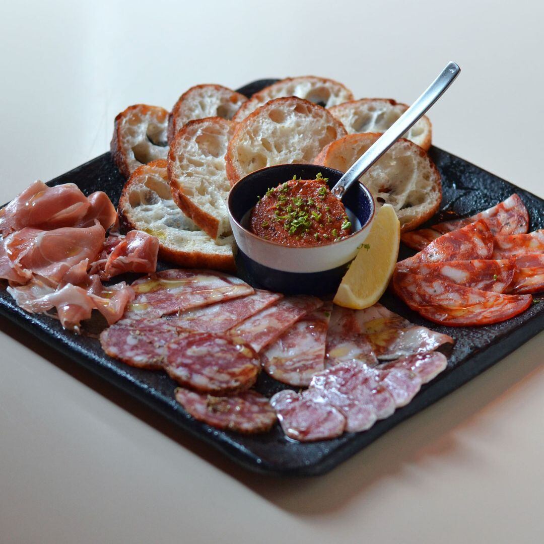 仕入れ状況によりますが5種類ほどの生ハムやサラミをご提供。