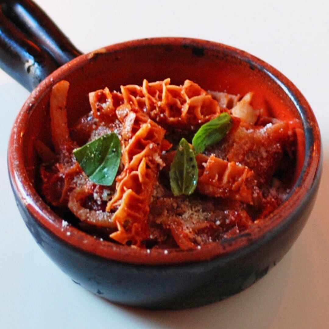 シナモ特製のトマトソースで牛トリッパ(第二胃、ハチノス)をコトコト煮込みました。