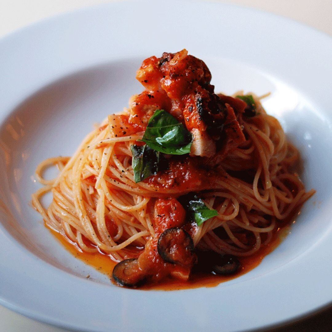 特製ベーコンと黒オリーブのトマトソース・スパゲティ