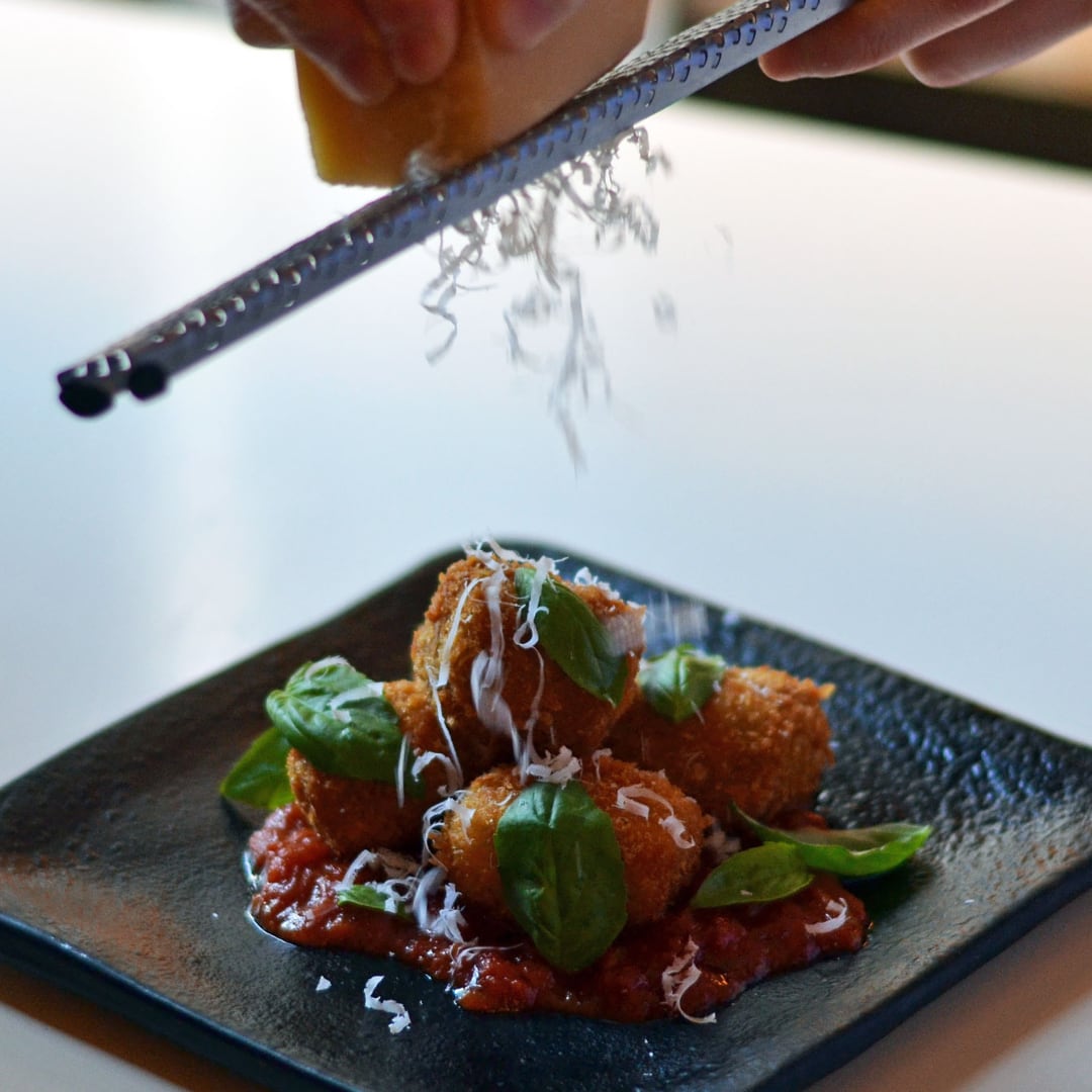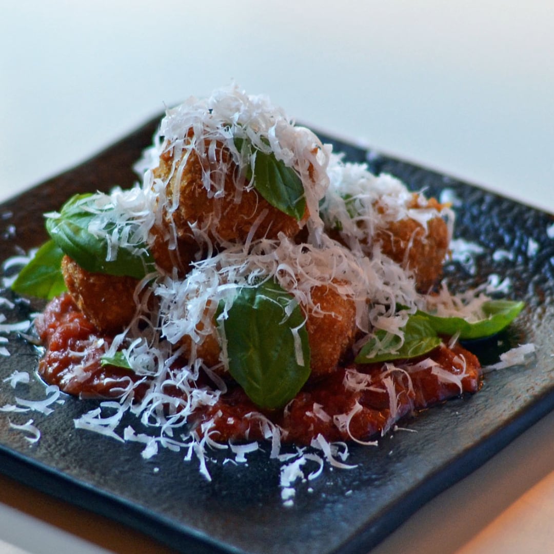 店主のひと言:里イモ好きな店主が超オススメする一品。里イモのほくほくまったり感と揚げたてのアツアツ感で思わず「おいひ~、ハフハフ…」となること必至。特製トマトソースとパルメザンチーズの相性も良く、一瞬でお皿から無くなってしまうかもしれません(!)。軽快な辛口白ワインとの相性も良く、ぜひご一緒にお召し上がりください。^^;